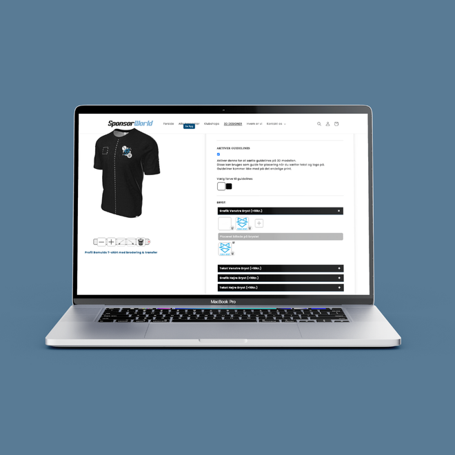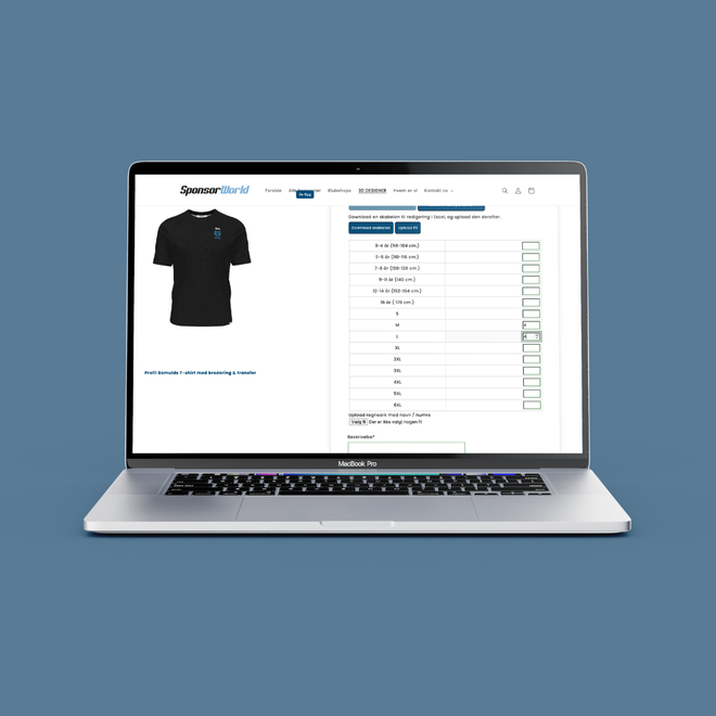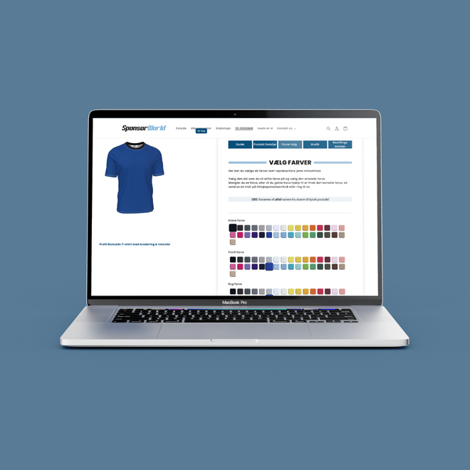 Som virksomhed er det vigtigt at have profiltøj, der passer til jeres brand og visuelle identitet. Det gør vi nemt for dig med vores smarte 3D-designer. Her kan du vælge mellem mere end 30 farver og skabe en T-shirt, der præcist repræsenterer din virksomhed.